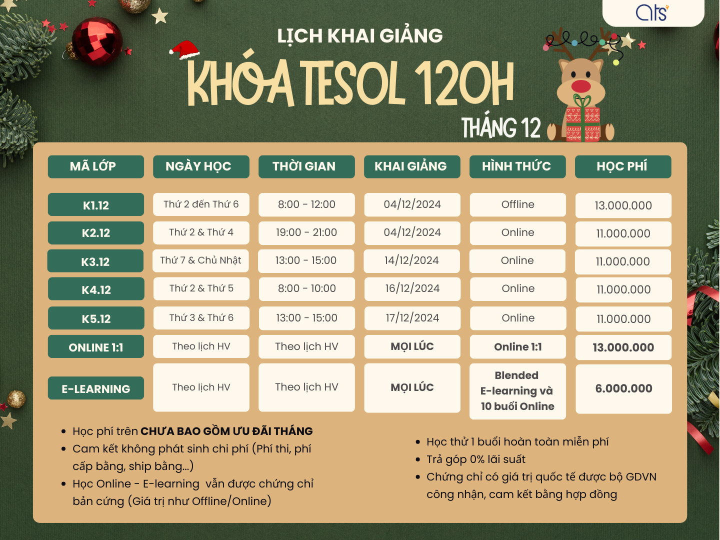 Chứng chỉ TESOL của ATS chỉ từ 6.000.000 đến 13.000.000 với chương trình trả góp linh hoạt. ATS có BẢO HÀNH VĨNH VIỄN. CAM KẾT KHÔNG PHÁT SINH BẤT KỲ CHI PHÍ NÀO THÊM.
