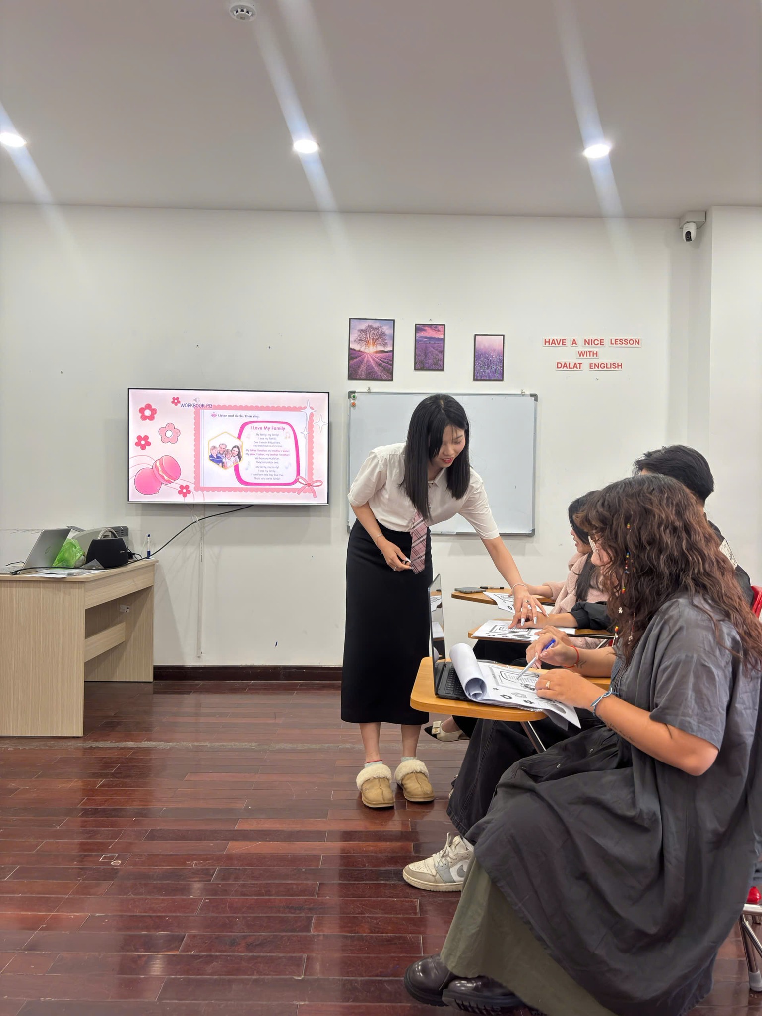 Học viên đã có cơ hội áp dụng lý thuyết vào thực tế thông qua các buổi giảng dạy demo và phản hồi từ giảng viên. Những buổi thực hành này không chỉ giúp rèn luyện kỹ năng mà còn tăng cường sự tự tin trong quản lý lớp học đa dạng, từ trẻ nhỏ cho đến học viên trưởng thành.